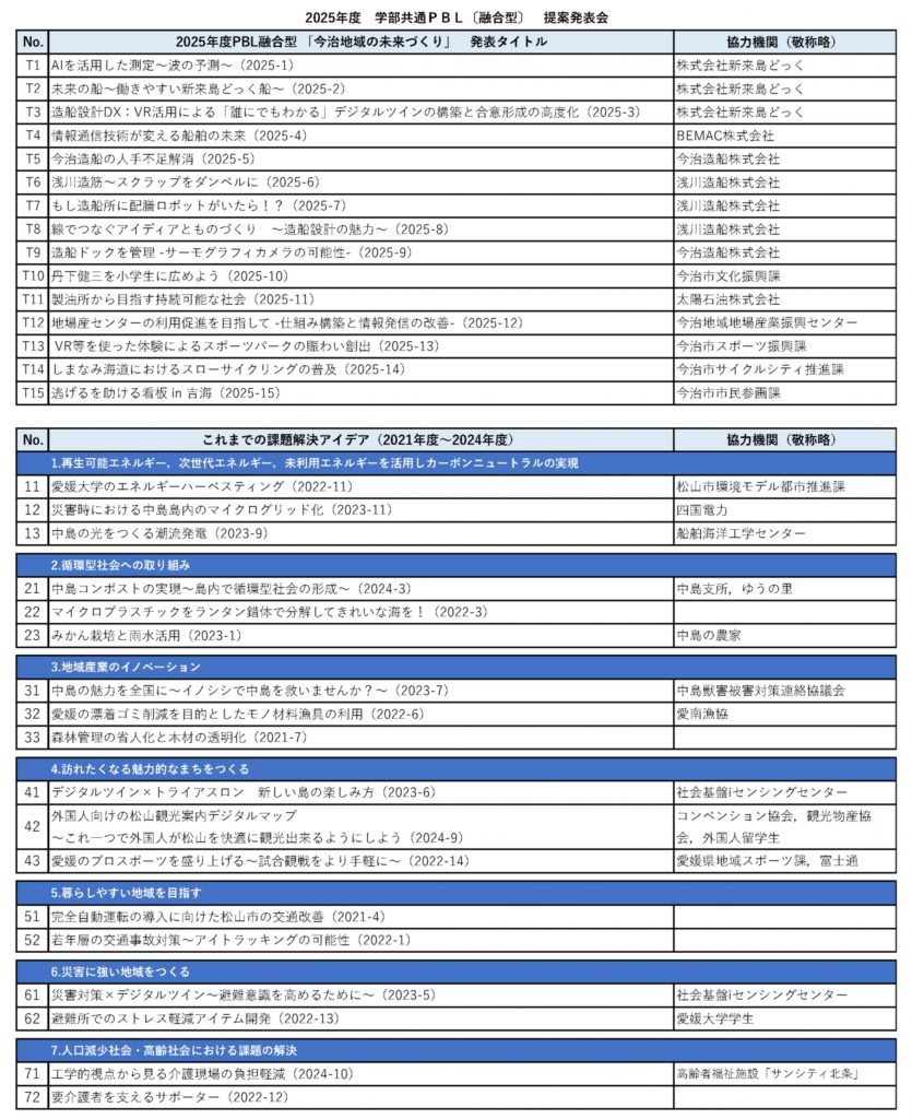 2月6日(金)に愛媛大学、2月13日(金)に今治サテライトにて、「工学的視点による地域課題・社会課題解決!ー今治地域の未来づくりー」と題して、学部共通PBL最終発表会を開催いたしました。