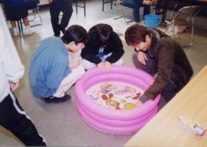 はりがねでいろいろな形のわくを作ってシャボン玉を作ってみよう。