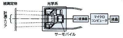 放射温度計は測定物体の表面から放射される赤外線のエネルギー量を測定し、温度値として読みとります。