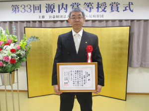 この賞は、平賀源内の偉業をたたえて設⽴された公益財団法⼈エレキテル尾崎財団が、電気・通信技術等の研究分野で先導的・開拓的な研究業績を挙げた者を毎年選考し、授与するものです。