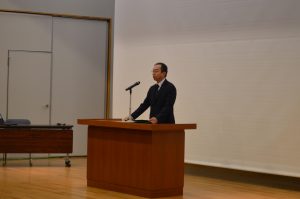 ミーティングでは、はじめに、森脇亮工学部長から開会の挨拶がありました。